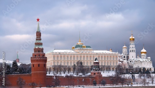 Obraz premium 눈 덮인 모스크바의 크렘린 성벽