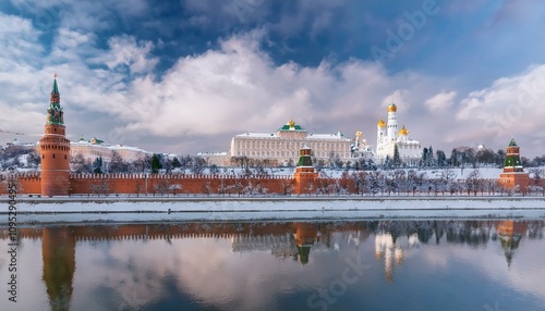 © 순단 강, Obraz premium 눈 덮인 모스크바의 크렘린 성벽