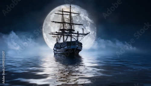 Fototapeta premium 칠흙같은 바다 위를 항해하는 해적선