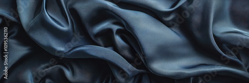 © pham, Obraz premium 光沢のある紺色の絹生地が重なり合う美しいテクスチャー