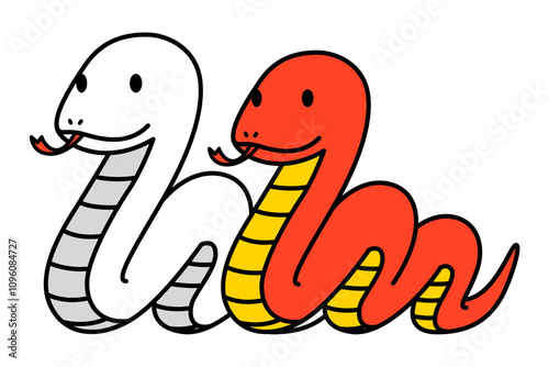 Fototapeta premium 紅白のヘビ 年賀状素材