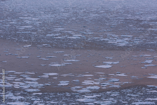 Fototapeta premium 北海道 知床の夕日に染まる流氷
