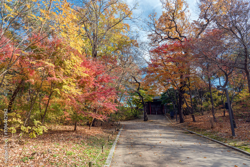 © wanmo, Obraz premium 늦가을 창경궁의 단풍길- 창경궁- 종로구, 서울 대한민국