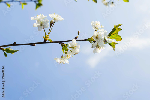 © bu_photo, Naklejka premium весенняя ветка цветущей вишни