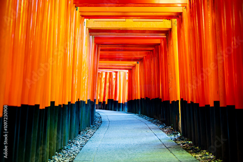 Fototapeta premium 京都は、伏見稲荷大社の有名な千本鳥居