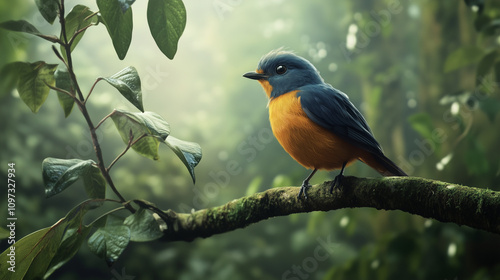 © 翔 田中, Obraz premium 木の枝で休むカラフルな小鳥