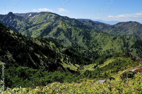 Naklejka premium 長野県 新緑の志賀高原 のぞき