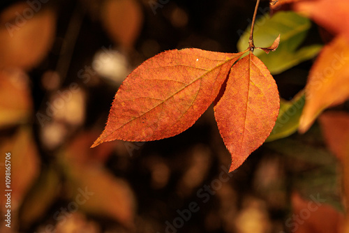Obraz premium 秋の日差しを浴びて輝く色づいた葉