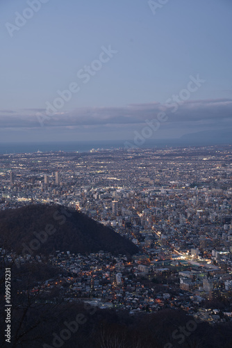 Obraz premium 札幌藻岩山山頂展望台からみた札幌のビル群の街並み