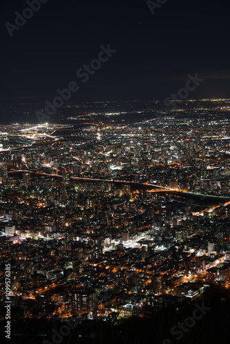 Obraz premium 札幌藻岩山山頂展望台からみた札幌のビル群の街並み
