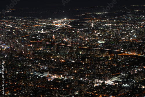 Obraz premium 札幌藻岩山山頂展望台からみた札幌のビル群の街並み
