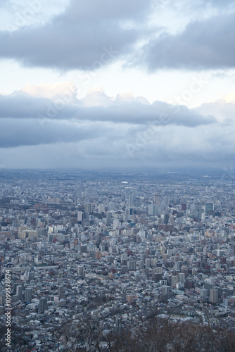 Obraz premium 札幌藻岩山山頂展望台からみた札幌のビル群の街並み