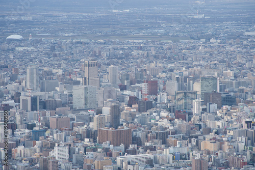 Obraz premium 札幌藻岩山山頂展望台からみた札幌のビル群の街並み