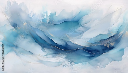 © Bambi and Sunny, Obraz premium 優美な青色の絵の具の抽象画