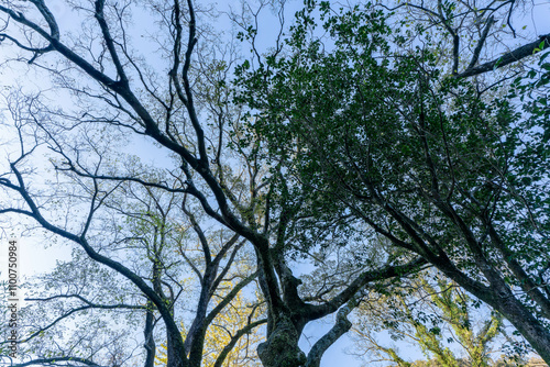 Obraz premium 秋空を仰ぐ木々