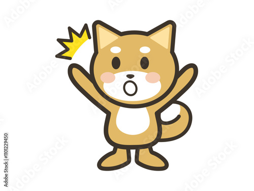 © shunpang, Obraz premium 両手を広げてびっくりするかわいい犬のイラスト