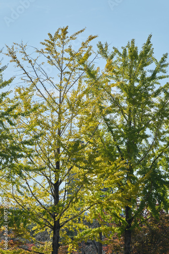 © v_0_0_v, Obraz premium 晴れの日のイチョウの木