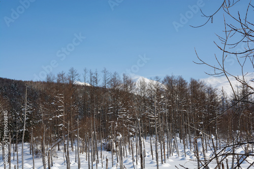 Obraz premium 冬の晴れた日の青い池 美瑛町