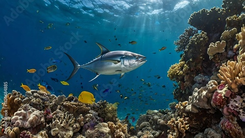 Fototapeta premium 珊瑚礁を泳ぐマグロ