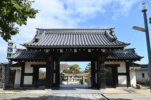 Naklejka premium 吹揚神社の瓦屋根の大きな門