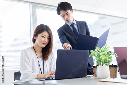 © TAGSTOCK2, Fototapeta premium 会社で打ち合わせをするビジネスマン