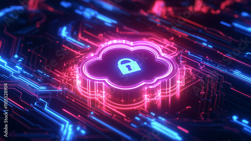 © bephoto, Obraz premium サイバーセキュリティを象徴するクラウドアイコン