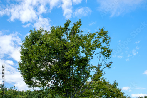 © Kazutaka, Obraz premium 青空に向かって伸びる緑の木