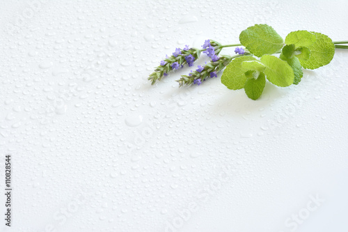 © tamayura39, Naklejka premium ラベンダーとミントの葉 白色背景