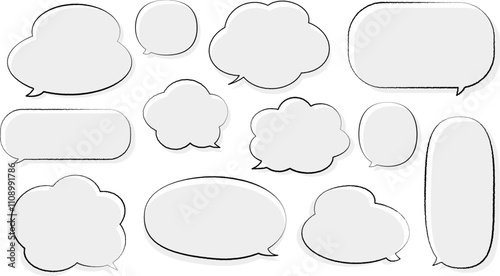 © kyon, Fototapeta premium 灰色の、フワフワもこもこの吹き出しセット。