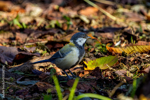 © ichihira, Obraz premium 地面を歩くシジュウカラ