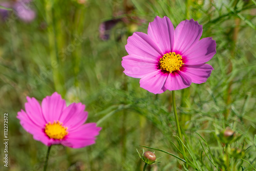 Fototapeta premium 晴れた日の美しいピンクのコスモス