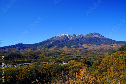 © sunftaka77, Fototapeta premium 秋の開田高原 九蔵峠から眺めた御嶽山と紅葉