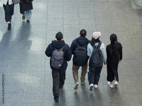 © zheng qiang, Obraz premium 冬の朝の街の繁華街で歩く人々の姿