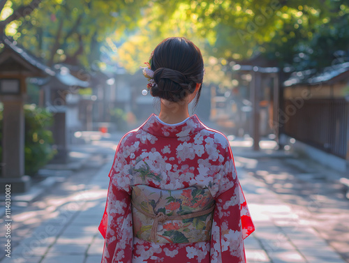 © CrioStudio, Fototapeta premium 伝統美の背中 - 神社参拝に向かう女性の着物姿