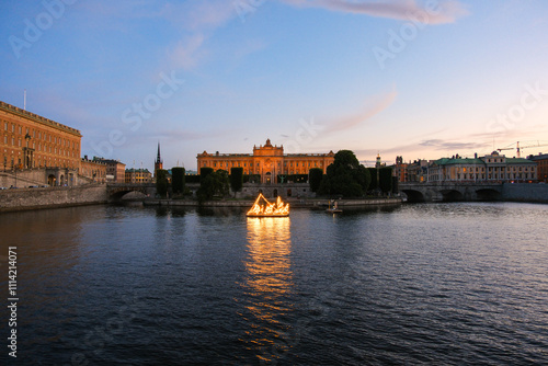© 健太 上田, Obraz premium スウェーデン ストックホルム 夕暮れの国会議事堂