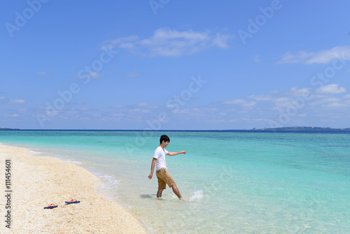 © Liza5450, Fototapeta premium 沖縄の海でくつろぐ男性