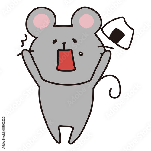 Obraz premium おにぎりを食べて驚くネズミ