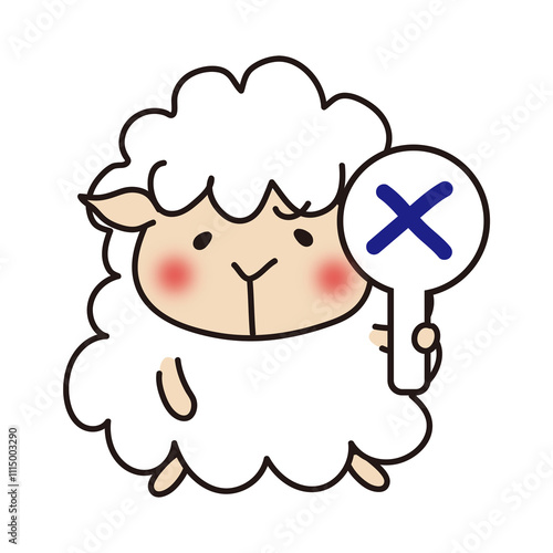 © てがきっず, Obraz premium バツを出すほっぺが赤い羊