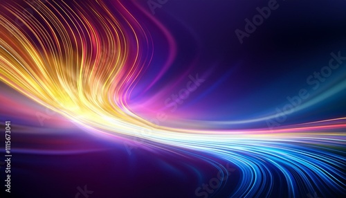 Obraz premium 青紫のグラデーションと黄色から白へ変わる光のライン