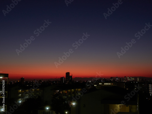 Fototapeta premium 鮮やかな夕焼けと名古屋市の街並みの夜景