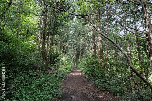 © 고은 주식회사, Obraz premium 산 정상을 올라가는 삼나무숲 길 제주 서귀포시 안덕면 광평리 왕이메오름