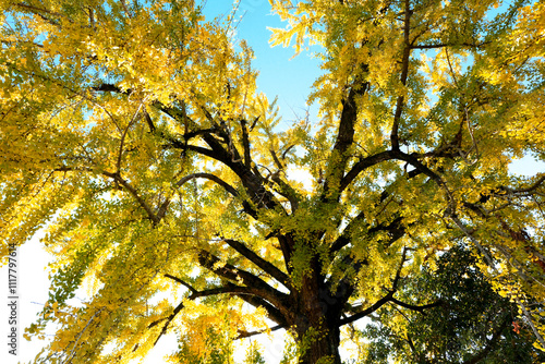 Fototapeta premium 黄黄く色づいたイチョウの木