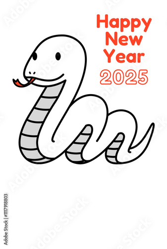 Fototapeta premium 干支の白いヘビ 年賀状テンプレート