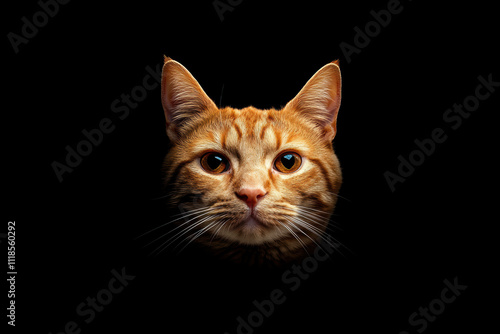 © pham, Obraz premium 黒い背景の前にいるオレンジ色の猫の顔のクローズアップ