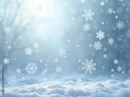 Naklejka premium 白銀の雪の結晶が空を舞う静かな冬の風景