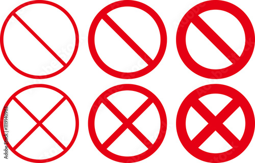 Fototapeta premium 赤い禁止マーク、線の太さのバリエーションがあるイラストセット