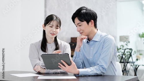 © mapo, Obraz premium タブレットで資料を見る男女
