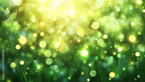 Fototapeta premium 緑の草原に光が差し込む、夢のような輝きとぼかしを楽しむ瞬間