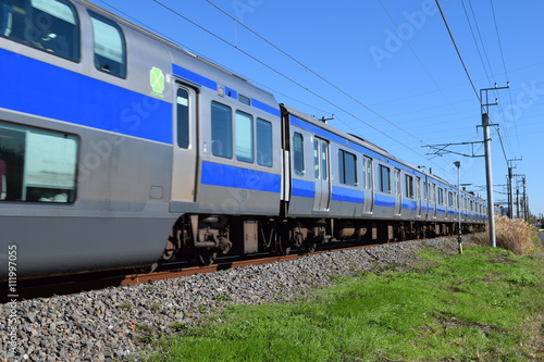 © FRANK, Obraz premium 走行中の電車/茨城県の常磐線で、走行中の電車を撮影した、通勤通学イメージの写真です。