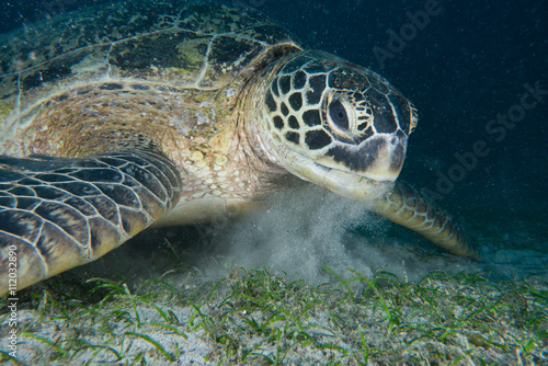 Fototapeta premium アオウミガメの食事風景